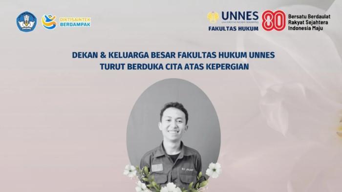 Semarang, Mata4com – Kabar duka datang dari dunia pendidikan tinggi di Jawa Tengah. Seorang mahasiswa Fakultas Hukum Universitas Negeri Semarang (Unnes), Iko Juliant Junior (20), ditemukan meninggal dunia dalam kondisi penuh luka lebam. Kepergian mahasiswa angkatan 2024 ini menyisakan tanda tanya besar, baik bagi keluarga maupun rekan-rekan kampusnya.